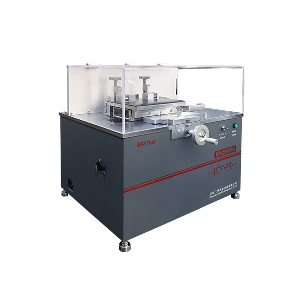 三、 設(shè)備說明:啞鈴型制樣機適用于制取各種非金屬管材或板材的啞鈴型拉伸試樣及維卡熱變形試樣。本機采用仿形加工原理,并結(jié)合機械傳動原理將螺紋旋轉(zhuǎn)運動轉(zhuǎn)變成直線運動,具有操作簡單、快速、方便且制得試樣標準、尺寸穩(wěn)定等特點。試樣與刀具的相對位置可根據(jù)實際情況調(diào)節(jié),試樣的形狀由相應(yīng)的靠模板形狀控制,工作過程不受操作人員調(diào)動的影響,多次重復(fù)使用,不需要反復(fù)對刀,能得到用戶需要的試樣樣條;減少了工作時間的耗損和提高了操作的通用性、提高了工作效率、降低了加工成本;且在工作臺面上安裝有吸塵裝置,為工作人員提供了良好的工作環(huán)境。采用標準銑刀加工,刀具耐用,制得樣品邊緣平滑,無毛刺。是電子拉力萬能試驗機及維卡熱變形試驗機的理想配套產(chǎn)品。