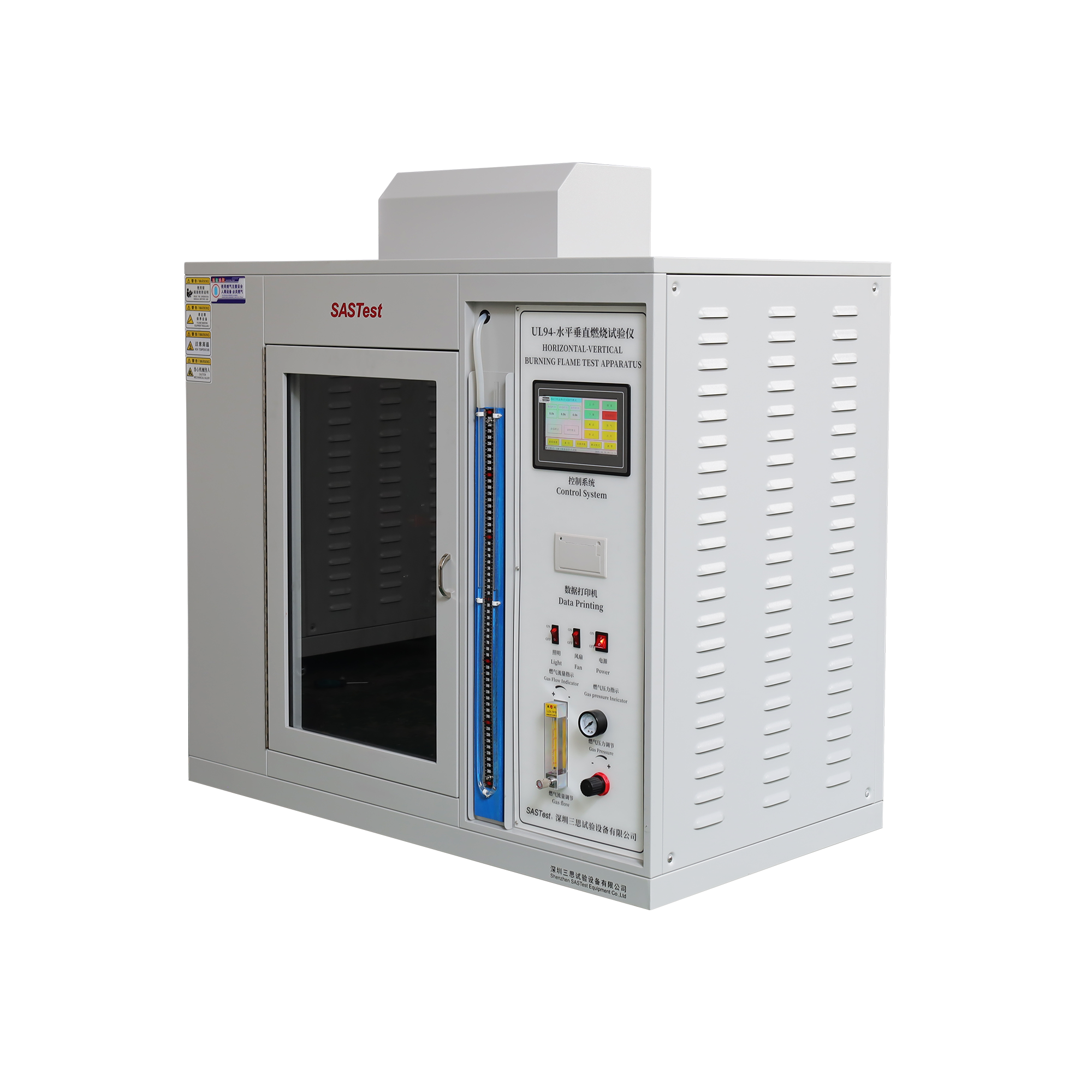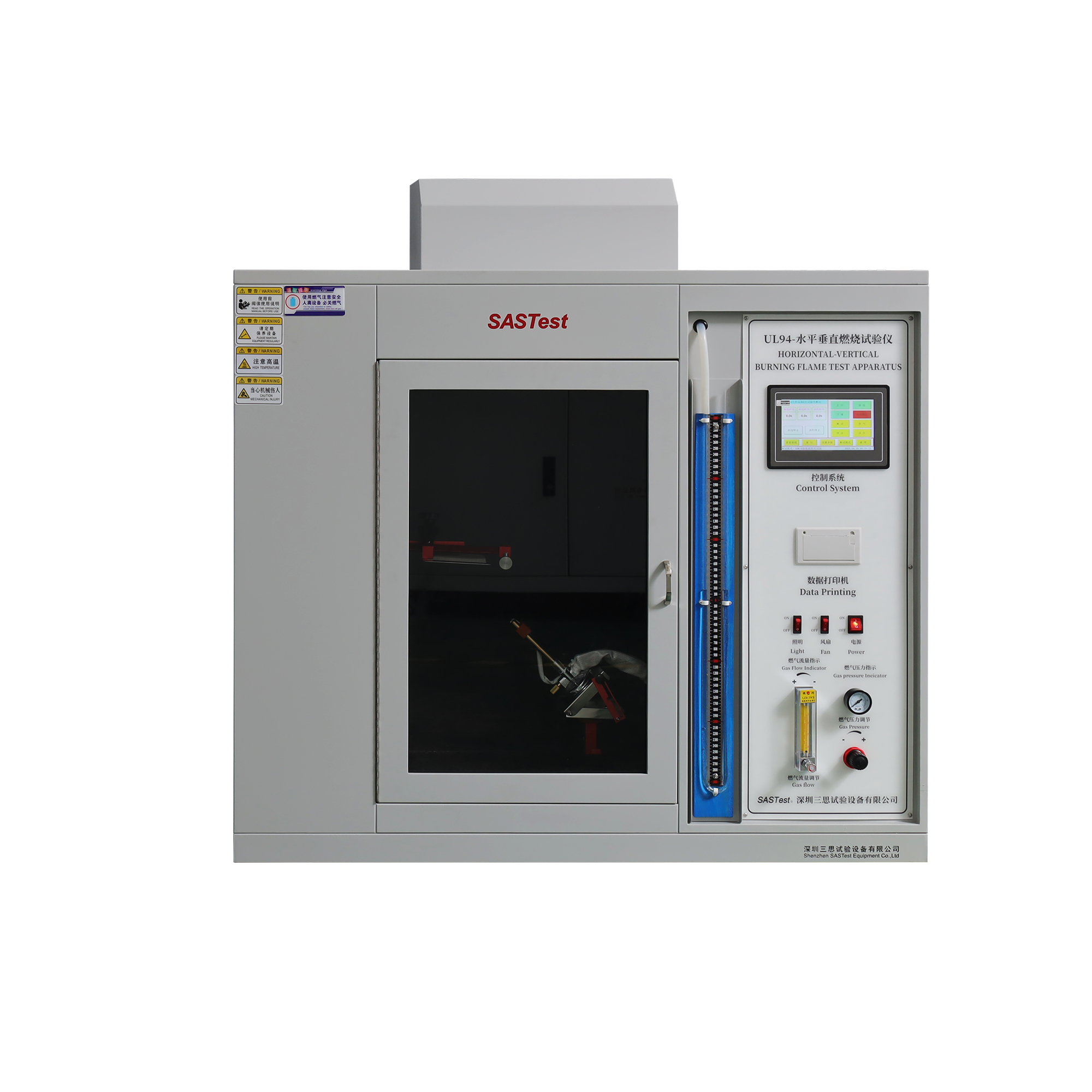 UL94水平垂直燃燒試驗箱適用于檢驗和評定塑膠材料的燃燒特性,是根據(jù)美國 UL94 標準《設備和器具部件用塑膠材料的可燃性試驗》中規(guī)定的有關條款設計制造,對設備和器具的塑膠部件進行水平、垂直可燃性試驗,并配置有氣體流量計,調節(jié)火焰大小,采用電機驅動方式,操作簡單安全。本儀器可評定材料或泡沫塑料的可燃性如:V-0、V-1、V-2、HB、5V、HF-1、HF-2、HBF級。